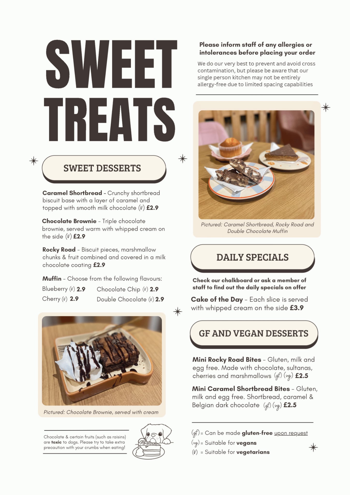 Please note that we are not a “dog-friendly” cafe, but instead a cafe with our very own friendly dogs!